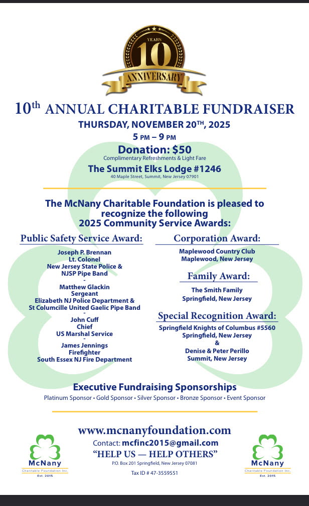 The annual membership fee of $150 can be mailed directly to the club at 648 Prospect Avenue, West Orange, NJ 07042 or you can send via Venmo at @ShillelaghClub (please write "2026 Dues" in the comment).